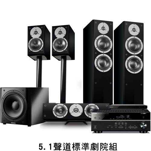 想要正統家庭劇院,請選擇標準5.1聲道,喇叭分別為前置、中置、後置(環繞)、重低音,配上主機擴大機,另可選配播放器,或其他多媒體作播放源。建議另可加購天空聲道